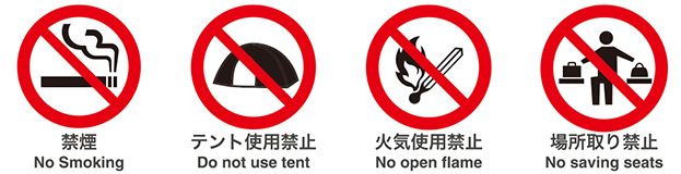・Tent setup, reserving parking spaces, and spreading out chairs and tables for dining may cause inconvenience to other customers, so please refrain from doing so.