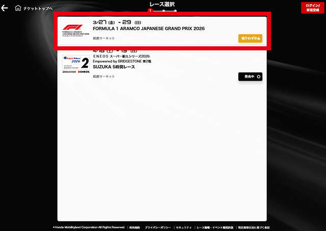 入場された時点で空席となっている中から、お好きな席へお座りください。 - ・Gr.1-Gr.10:MobilityStation 「FORMULA 1 Aramco JAPANESE GRAND PRIX 2026」より、「3/28(土)前夜祭Gr.1-Gr.10」の席種を選択ください。