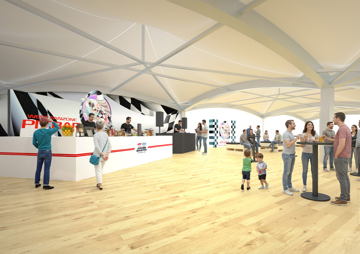 西エリアの観戦拠点として、一日を通してF1の魅力を満喫いただけるゾーンです。