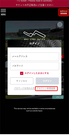 MobilityStationにログイン後、「鈴鹿サーキット」のロゴマークを選択してチケット選択画面へ進んでください。