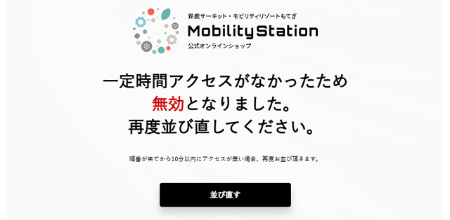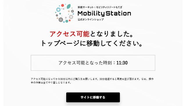 10:30~10:59にMobilityStationにアクセスいただいた方は、11:00~の販売にむけて抽選の対象となります。