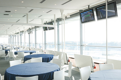 鈴鹿サーキットのレーシングコースを一望できる空調完備の快適なお部屋で、ドリンクを飲みながら休憩いただけるレストスペースです。 写真と映像で感じる鈴鹿サーキットの歴史ギャラリーとともにお楽しみください。