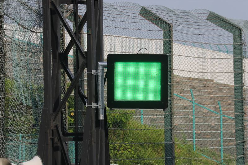走行中のドライバーにコース上の状況を知らせるために、コース上のライトパネルの色でサインを送ります。