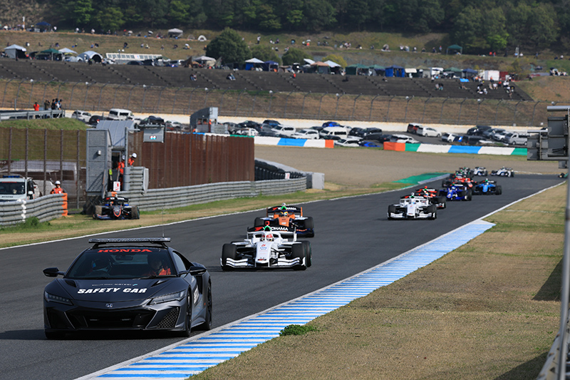 セーフティカーが出ている間は、追い抜きは禁止です。雨などで路面が濡れているときは、セーフティカーが先導してレースをスタートすることもあります。