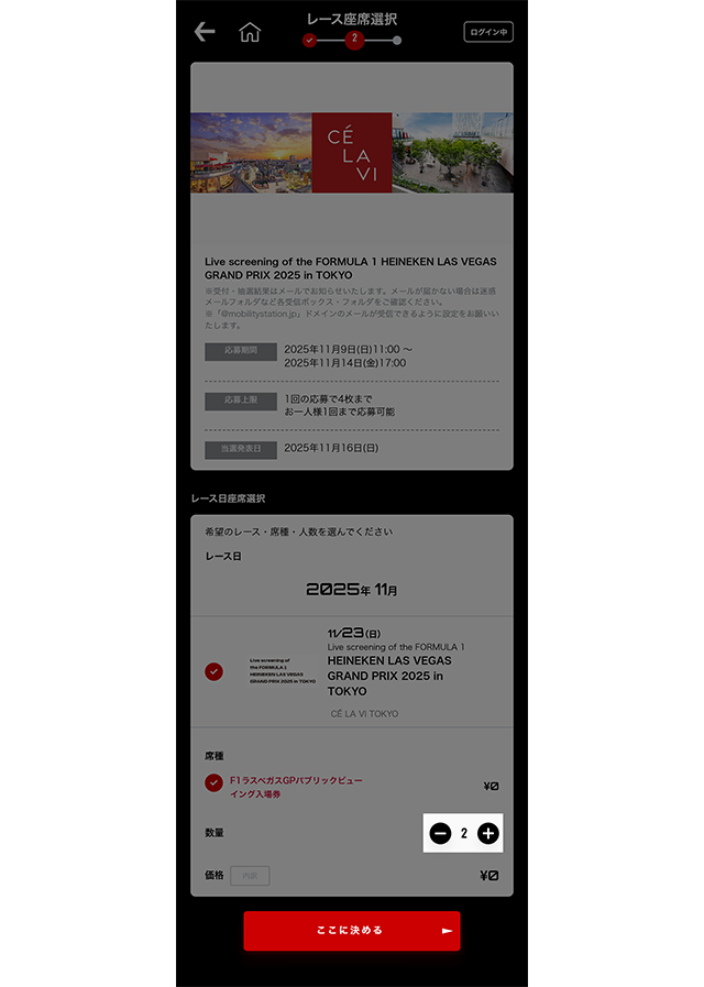 2025年11月23日(星期日・節假日),將於CÉ LA VI TOKYO(東京都澀谷區道元坂)舉辦F1拉斯維加斯GP公開轉播活動「Live screening of the FORMULA 1 HEINEKEN LAS VEGAS GRAND PRIX 2025 in TOKYO」。CÉ LA VI TOKYO位於與澀谷站直結的東急廣場澀谷頂樓兩層樓,除了Formula 1公開轉播外,還將舉辦DJ表演等活動。本活動免費入場,並於11月9日(星期日)起在MobilityStation接受報名,將以抽選方式邀請參加。