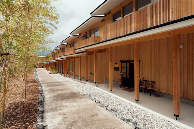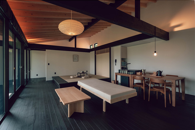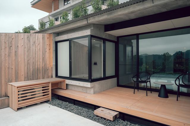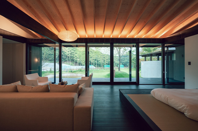以實現賓客如同擁有別墅般的住宿體驗為概念的和風現代別墅。私人花園設有露天風呂與戶外客廳,可一覽多氣的大自然景觀,客房由臥室與客廳組成,約100m²寬敞舒適。為使別墅與大自然融為一體,外觀建築採用當地產的杉木並塗成黑色。