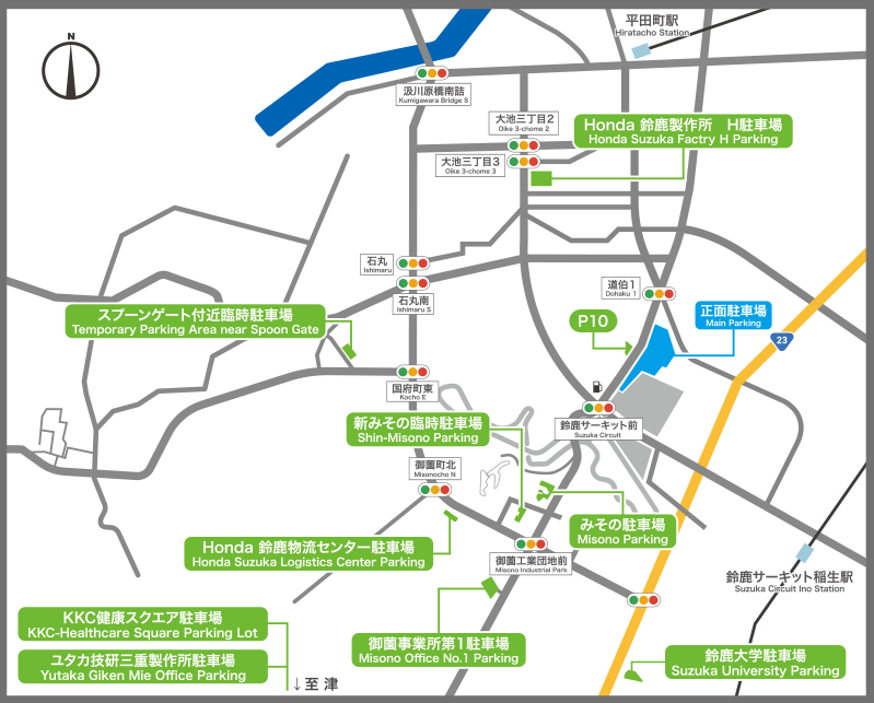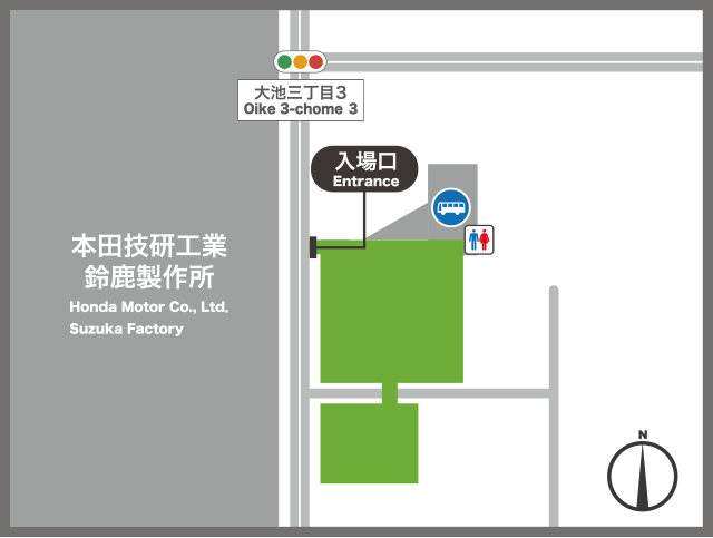 Honda 鈴鹿製作所 H停車場 | 7,000日元 | 3月29日(星期日)僅限當日 | 主入口(約2.5公里) 接駁巴士上下車地點(僅往程)到主入口(約550公尺) |