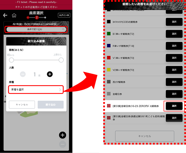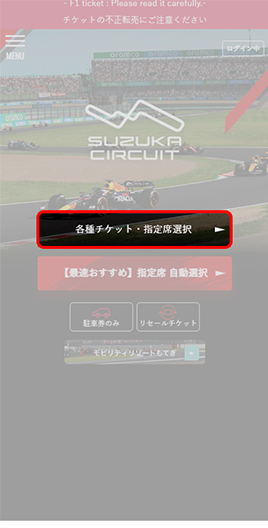 登入MobilityStation後,請選擇「鈴鹿賽道」的標誌,然後進入票券選擇畫面。